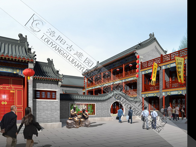 祭城古街位于鄭東新區(qū)盛和街與正光北街之間,南北長(zhǎng)300米,東西寬70米,地上建祭城街小吃城,二層局部三層,仿清代民居建筑,二層設(shè)通廊和跨街騎樓,方便交通,可規(guī)劃約420戶小吃店,地下一層為商業(yè)區(qū),地下二層為停車場(chǎng),可??啃⌒蛙嚰s1000輛。